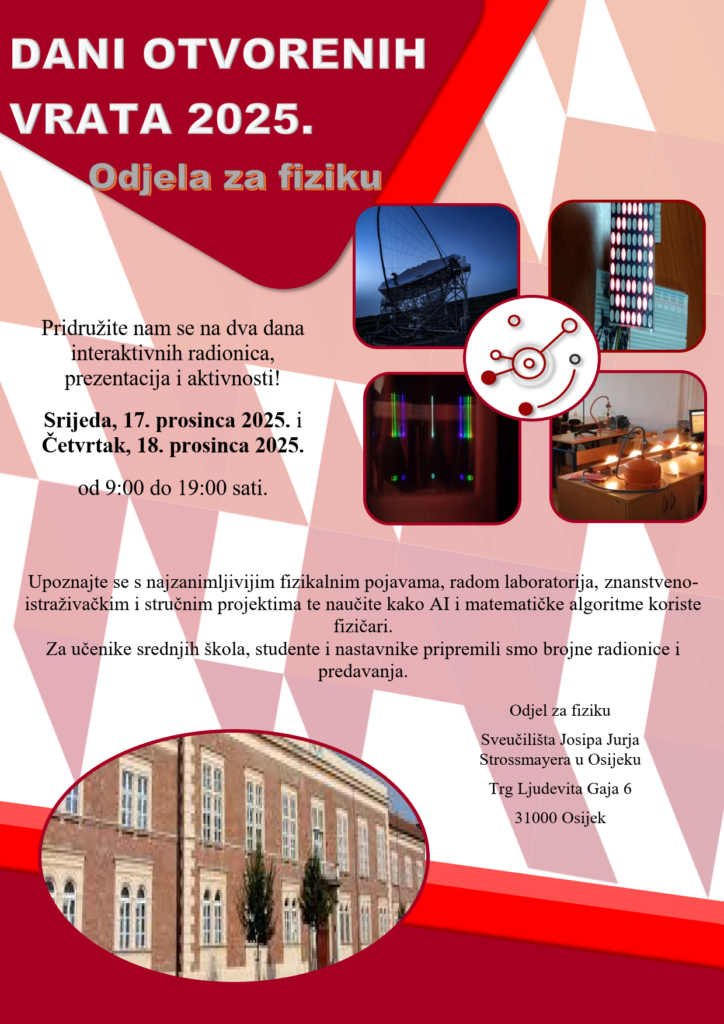 Upoznajte se s najzanimljivijim fizikalnim pojavama, radom laboratorija, znanstveno-istraživačkim i stručnim projektima te naučite kako AI i matematičke algoritme koriste fizičari.